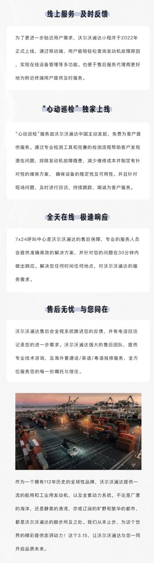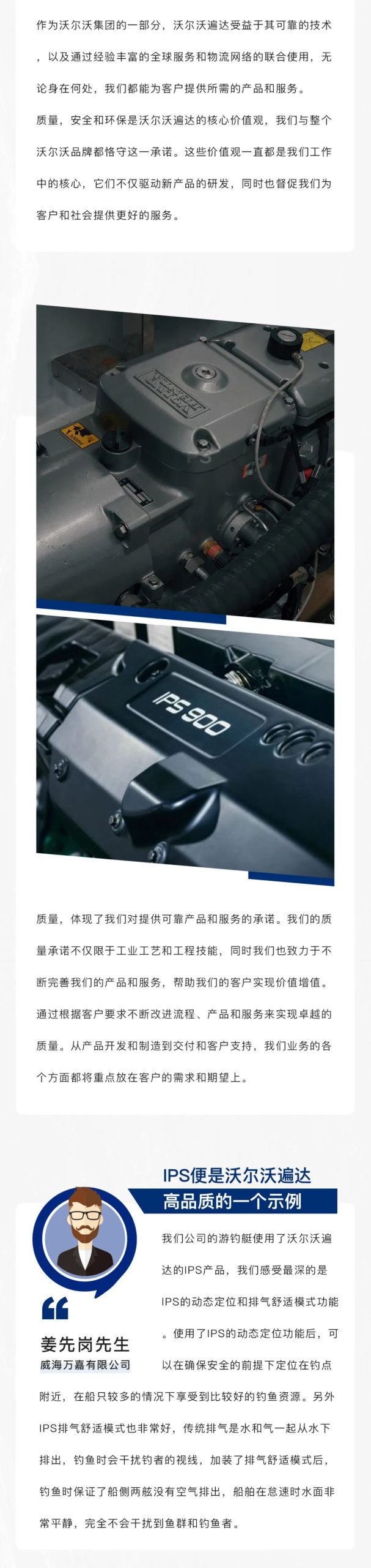 我國是海洋、航海大國,與航海相關(guān)的事業(yè)群,如航運(yùn)、港口、漁業(yè)、造船、海洋石油開發(fā)等產(chǎn)業(yè)在我國國民經(jīng)濟(jì)和社會(huì)發(fā)展中占據(jù)十分重要的地位。沃爾沃遍達(dá)作為海洋動(dòng)力解決方案的提供方,始終以優(yōu)質(zhì)的發(fā)動(dòng)機(jī)產(chǎn)品及配套系統(tǒng)和不斷革新的技術(shù),助力航海相關(guān)行業(yè)的發(fā)展,保護(hù)海洋的原始生態(tài)環(huán)境。